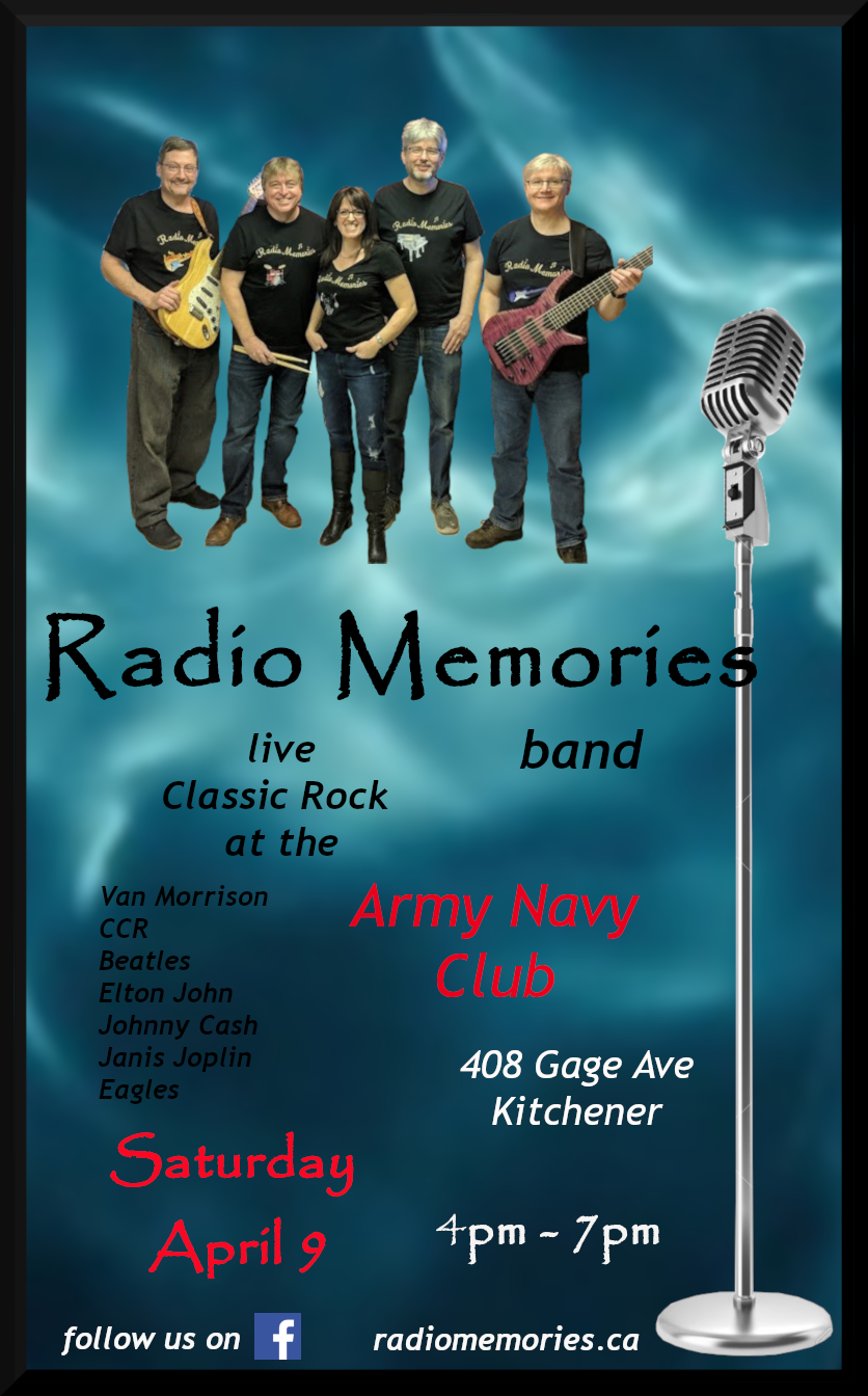 We’re back! Radio Memories returns to the Army Navy Club in Kitchener to play a fun bunch of Classic Rock tunes and some newer ones to get you up and dancing!