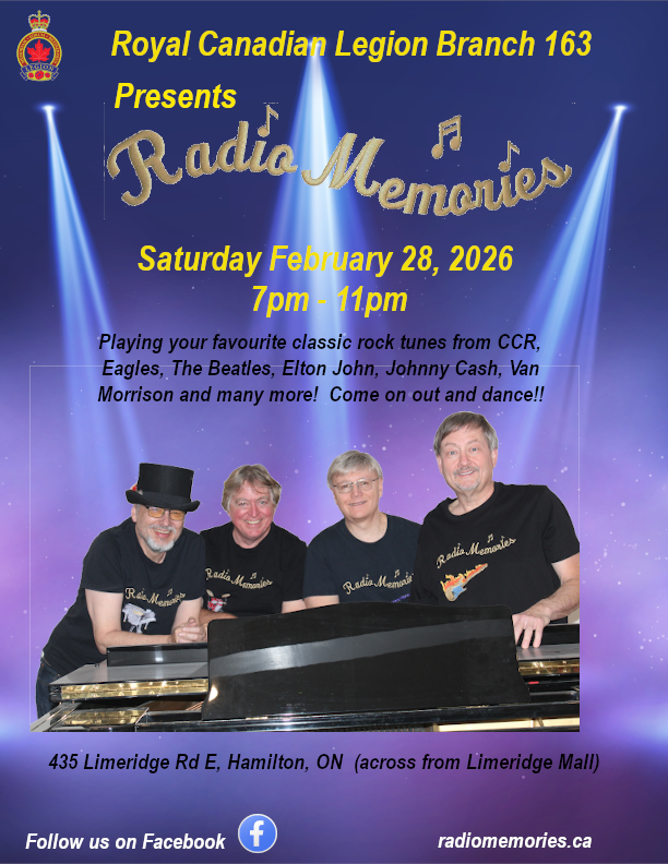 • Radio Memories at Legion Branch 163 in Hamilton, Saturday February 28, 2026 – 7pm to 11pm
